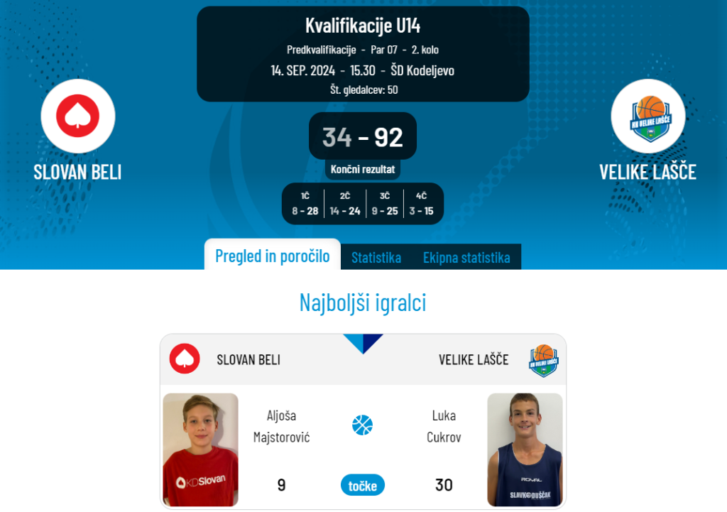 Naša ekipa U14 si je z včerajšnjo zmago proti KD Slovanu prislužila vstopnico za kvalifikacije za v 1.A oziroma 1.B ligo KZS U14. V skupini bodo njihovi nasprotniki Cedevita Olimpija, Ilirija A in Vransko ![]()